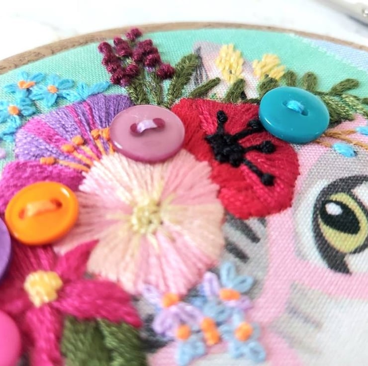 I love bright colours and this fabric was calling out to me to add some hand embroidered embellishment.