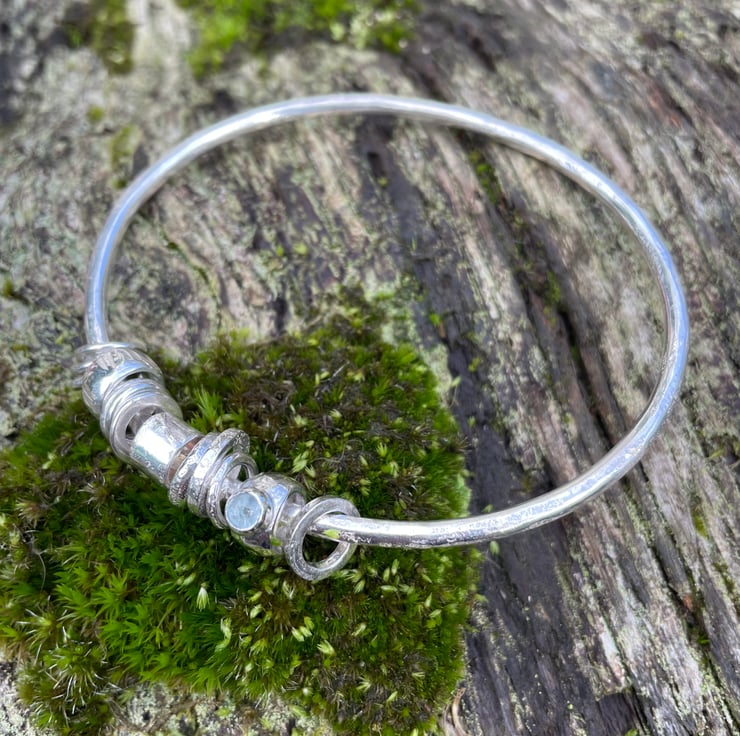 The bangle is made from 3 mm wire, it is available as a ladies Large approx 22 cm circumference.