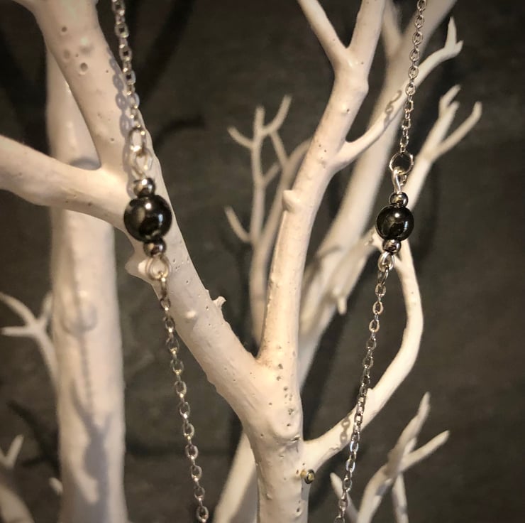 The chain is stainless steel and I have added Hematite beading with stainless steel micro beads to complement the energies of the Clear Quartz.