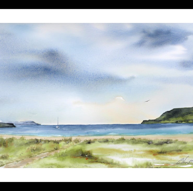 Calgary Bay, Isle of Mull. Seascape Original Watercolour Painting. 420x210mm.