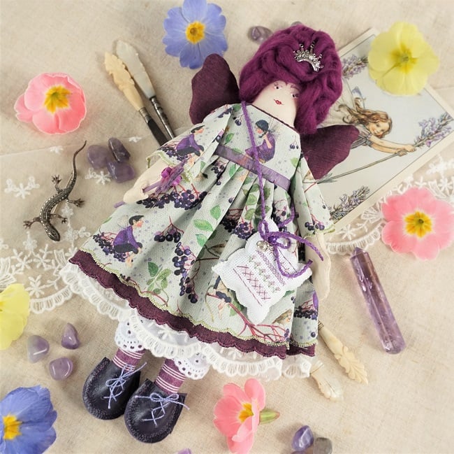 I wanted to make a fairy for a while but a more experienced fae not a teenage waif, so I decided to make a Fairy God Mother. Inspired by Flora, Fauna and Merryweather in Sleeping Beauty my God Mothers are practical hard working fairies trying to bring a little magic into the world. Sureau is the French word for elderberry and I think is a lovely name xx