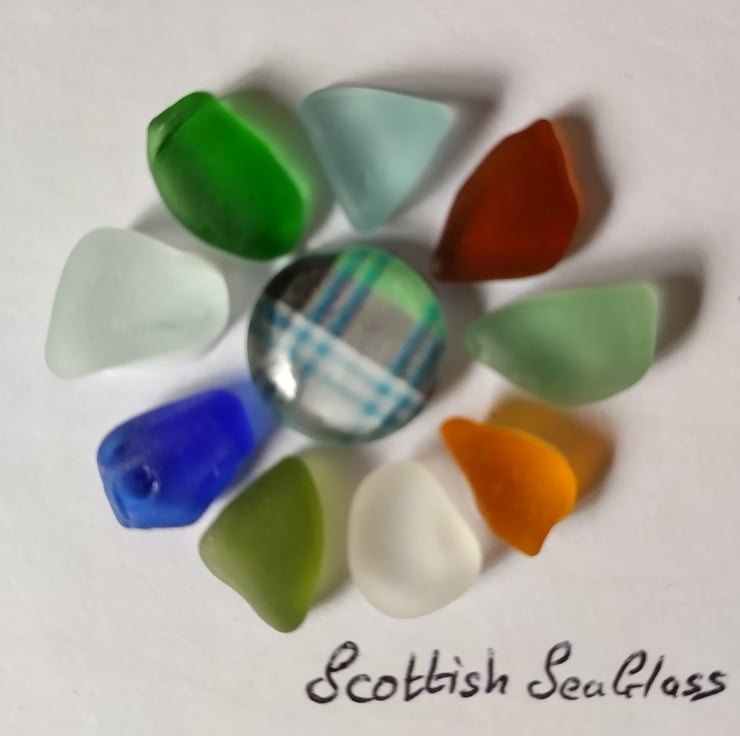 We collect all of our own seaglass from our local beaches on the West Coast of Scotland. The glass is many years old, tumbled smooth by the sea. I love to be able give these tiny glass gems a new life.