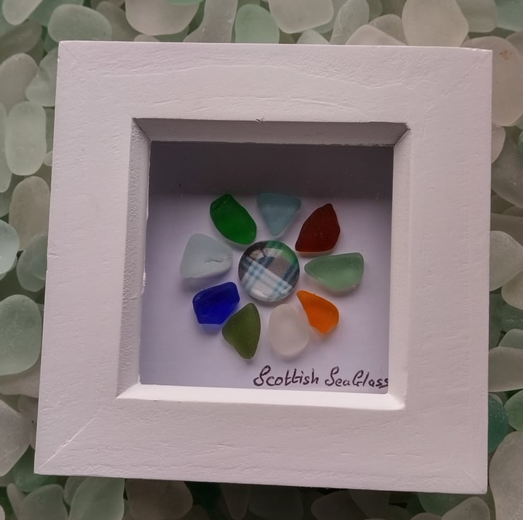Made from genuine Scottish Sea Glass, this cute little picture is guaranteed to bring a smile to any sea glass collector. Displaying a lovely selection of sea glass colours.