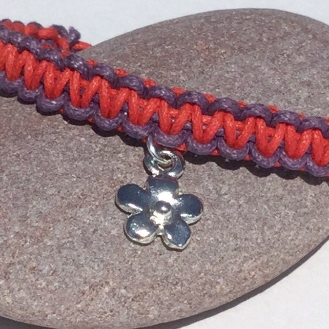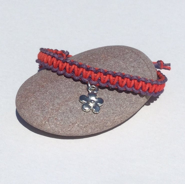 Lovely little gift from Cornwall, this cotton friendship bracelet has an added metal flower charm, and is adjustable in size.