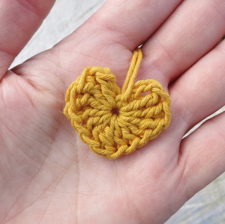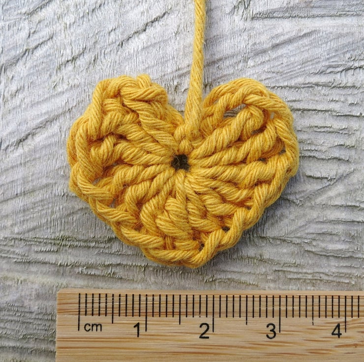 Bundle of ten little handmade crochet hearts in a yellow that reminds me of the wild Gorse along the Cornish hedgerows and cliff tops.