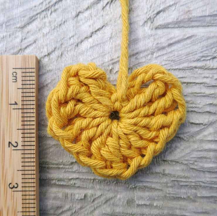 I've left approximately 15-20cm of yarn on them so that they can be tied to a gift, a bouquet of flowers or a place setting, or it can be trimmed to just the heart and used on cards or for scrap booking.