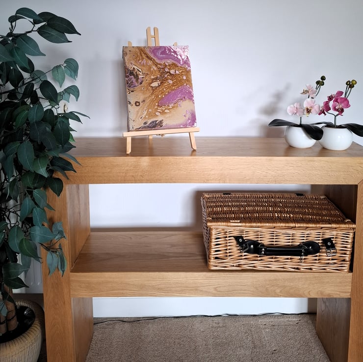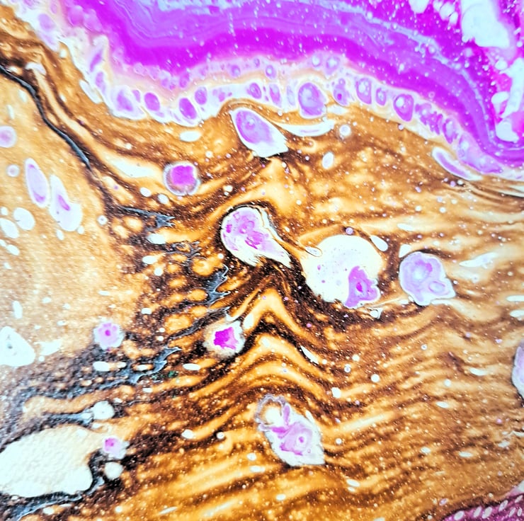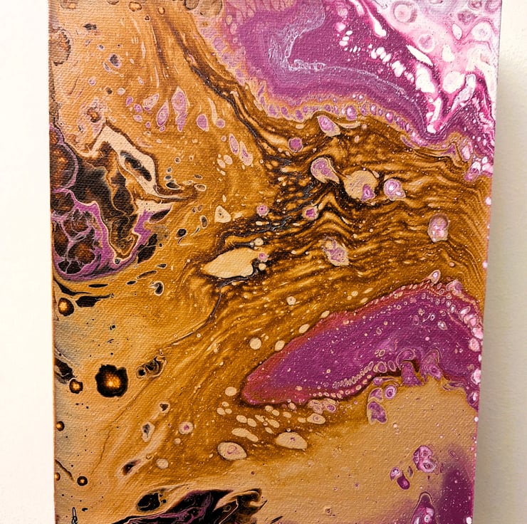 For this one I did a dirty pour (all colours in one cup) with lilac, sienna and white. As with all pours something always pops to mind, each person can see something different or new. And as it dried I could see a brown thick tree trunk with beautiful lilac flowers on the branches.