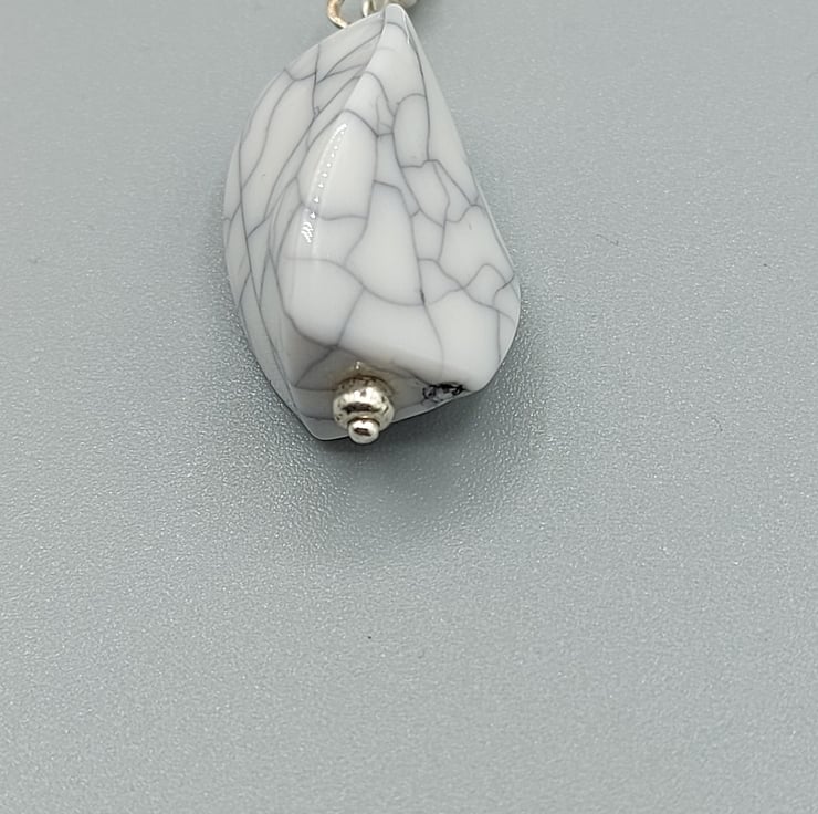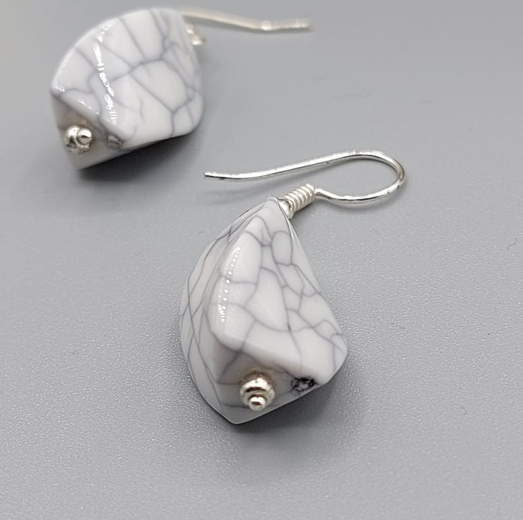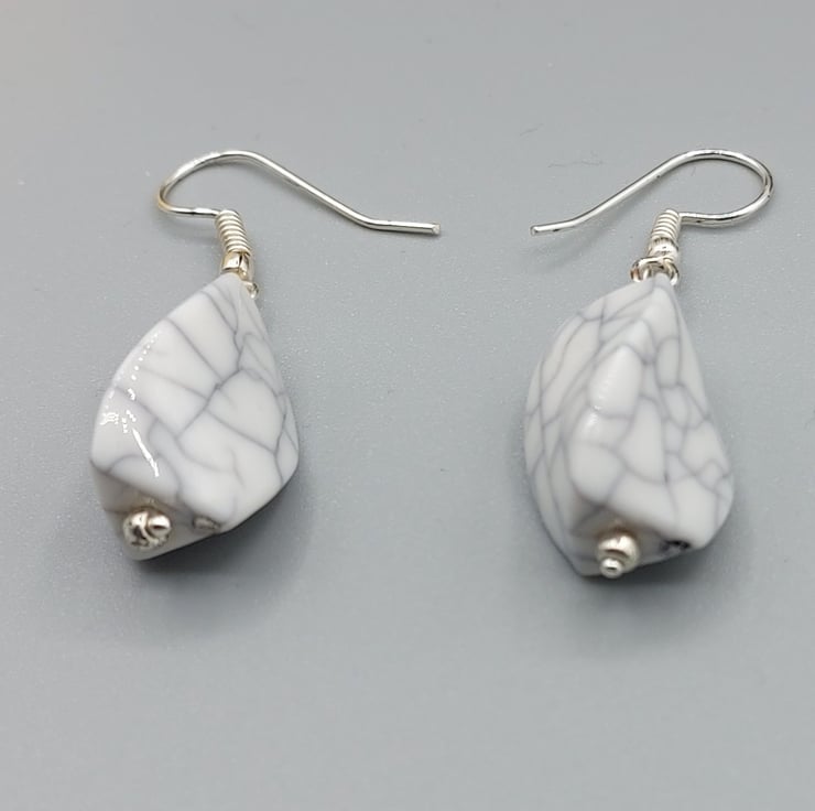 Crafted with exquisite attention to detail, these earrings feature a beautiful white howlite marble pattern that is sure to catch the eye. The sterling silver hook adds a touch of elegance, making these earrings suitable for any occasion - whether you're dressing up for a special event or simply adding a touch of glamour to your everyday look.