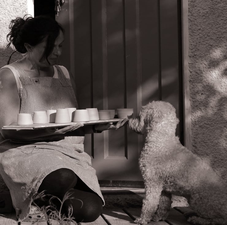 Everything here is made by me in my studio in Yorkshire under the watchful eye of our 8 year old dog Lola.