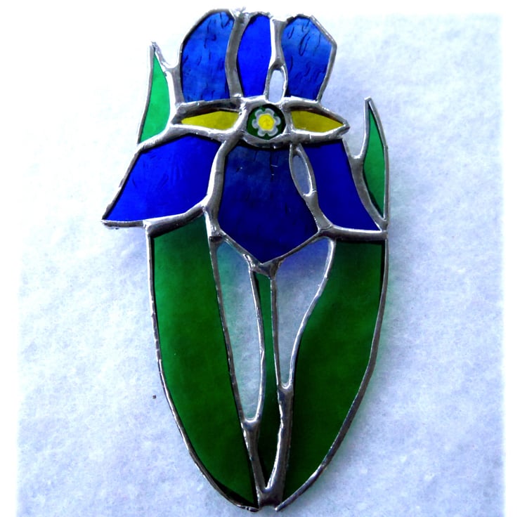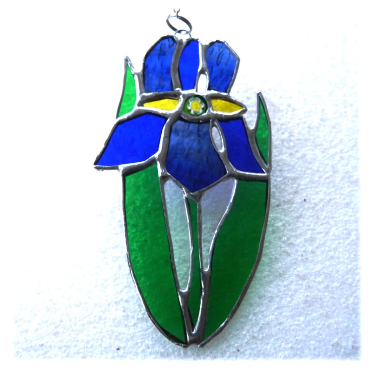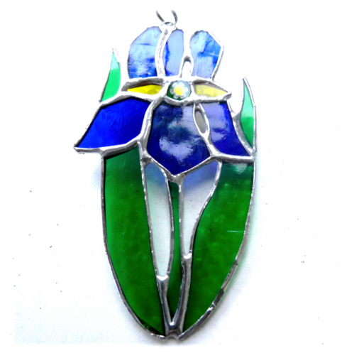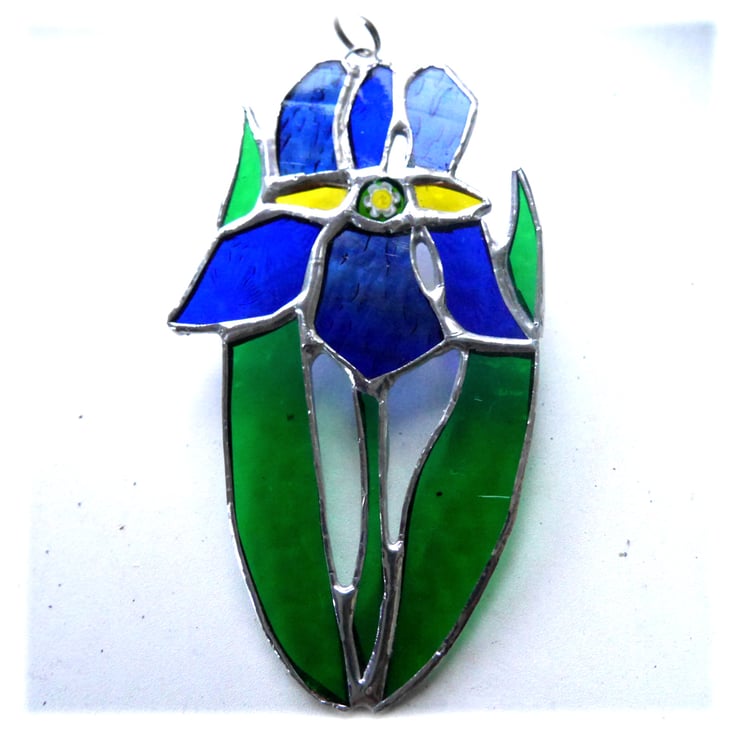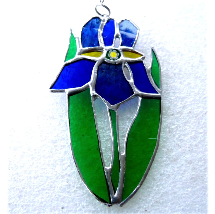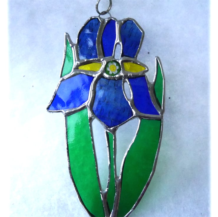 The suncatcher hangs from a chain which is securely attached to the top of the iris which is 13 cm high and 8cm wide.