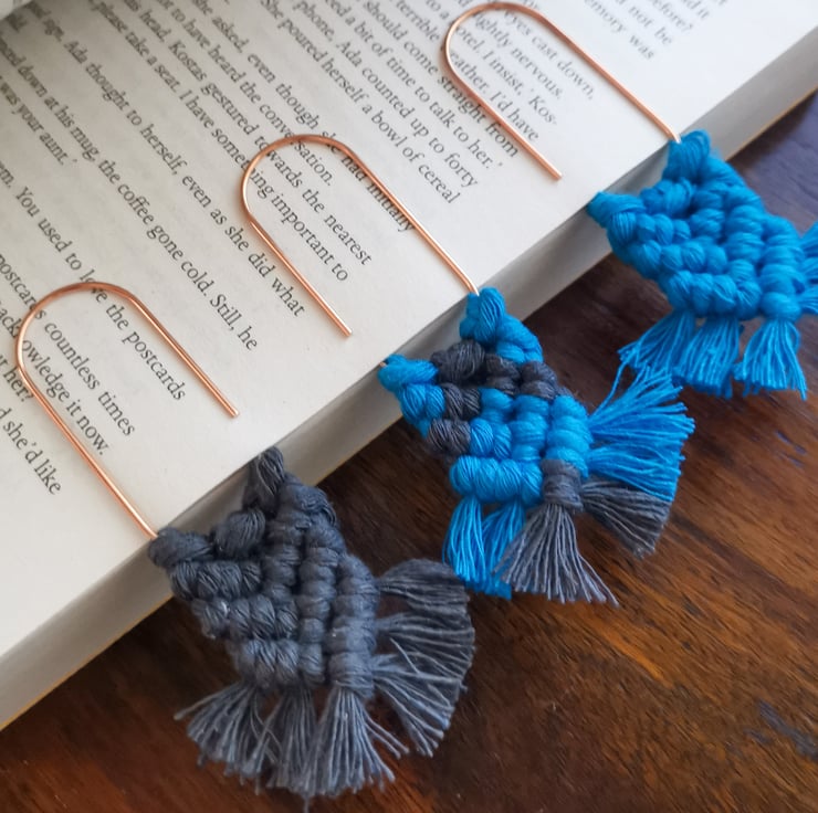 Set of 3 bookmarks on jumbo rose gold paperclips.