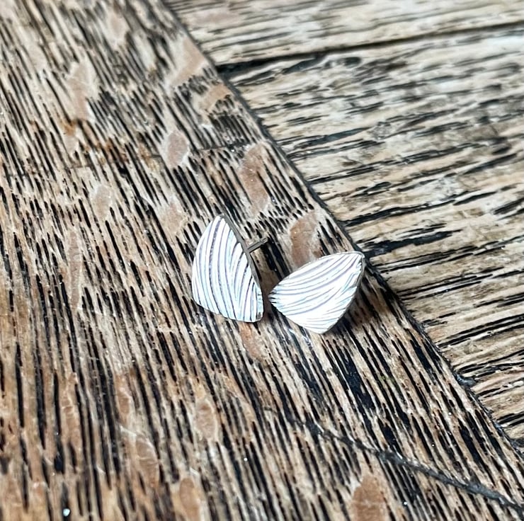 A lovely, everyday stud in a gentle triangular shape, with a wavy texture. Sterling silver back.