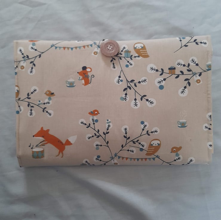 It has a design featuring foxes, owls and mice and is padded for comfort. There are two pockets that are large enough to carry spare nappies, wipes, etc. so that you have everything you need in one place.