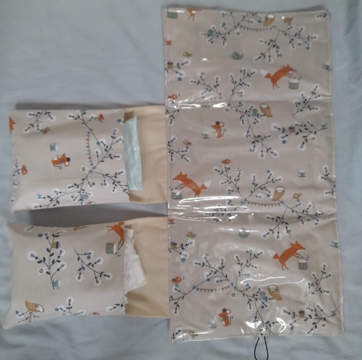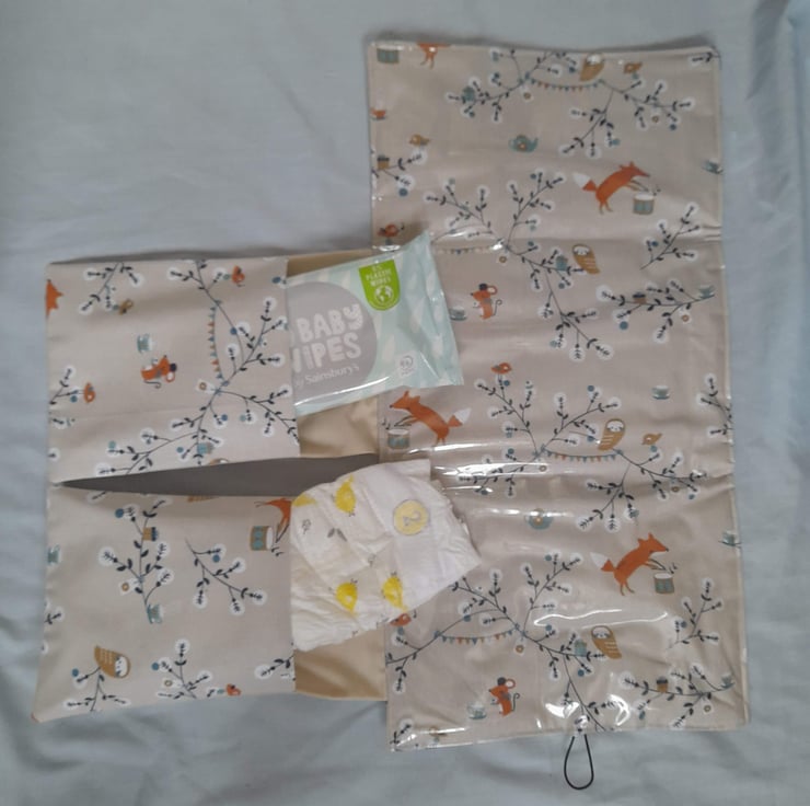 This travel changing mat is a handy way to carry everything that you need to change your baby when out and about and it all folds up into a handy little clutch.