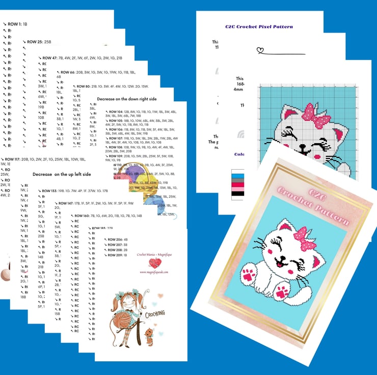 The PDF ebook contains a pattern for crocheters titled "Cat" with instructions to make the finished product.