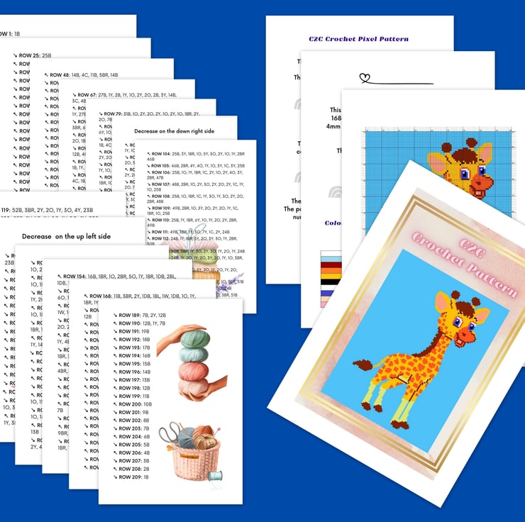 The PDF ebook contains a pattern for crocheters titled "Giraffe" with instructions to make the finished product.