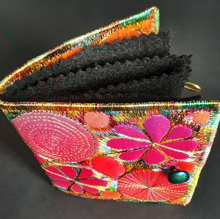 This is a handmade textile sewing needle case