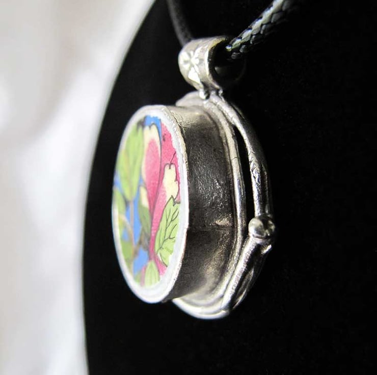 The pendant has been crafted from broken, chipped or crazed china that is no longer fit for purpose - no 'perfect' plates were harmed in the making of my jewellery! This piece is from a very pretty Crown Ducal plate called 'Birds of Paradise'. Each pendant is a unique statement piece and has its own little characteristics from the vintage china it's been taken from. It makes a very unusual and stylish gift.