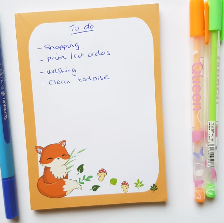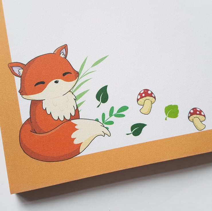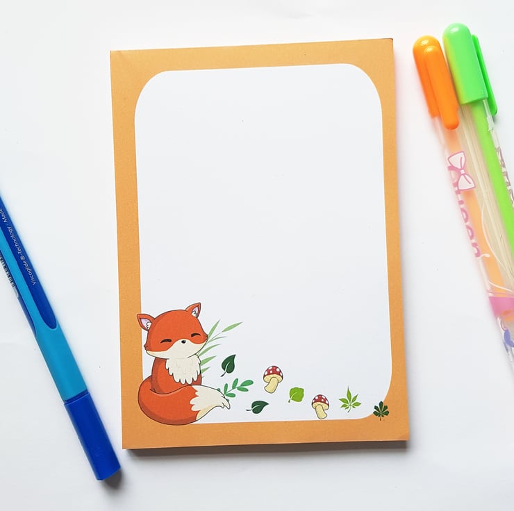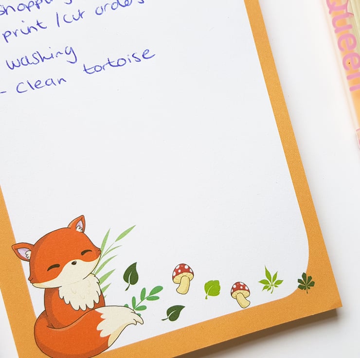 An A6 notepad made with my cute fox design, perfect for to do lists, making notes, happy mail, thank you slips and whatever doodles spring to mind!