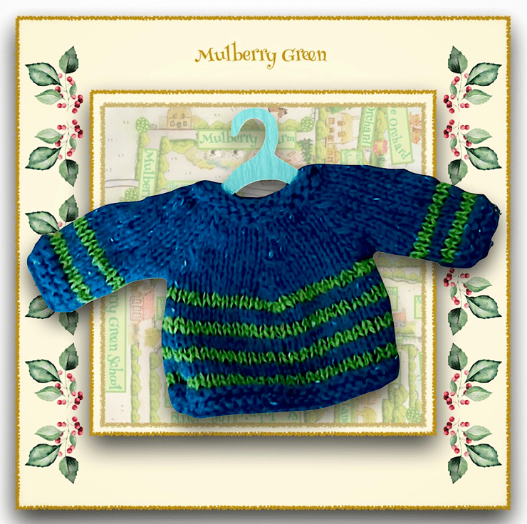 A sweet little striped jumper, in Sheepjes Terrazzo Felted tweed, to fit the Mulberry Green characters. The jumper is hand knitted and goes well with jeans.