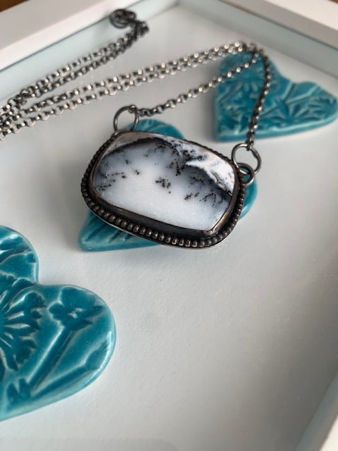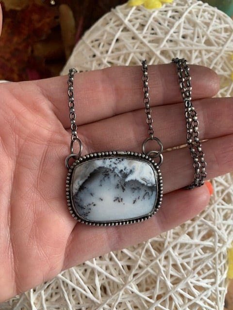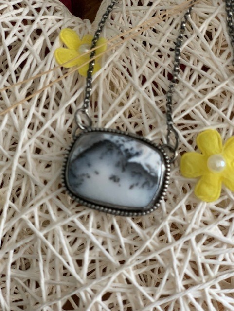 This pretty Dendrict opal has a lovely Mountain view and makes a lovely statement piece.