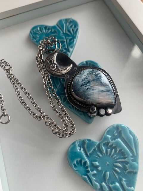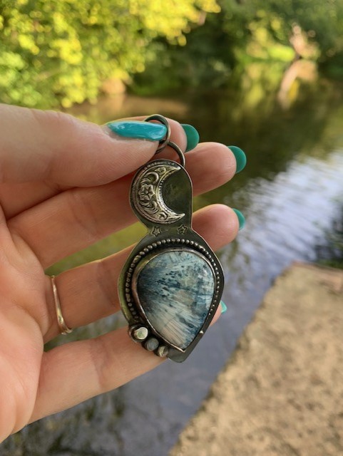 The markings on this stone were just beautiful and I knew it had to be a moon design when I was creating this piece, nature is just so magical everything just has a place and I felt the the stone was just right.