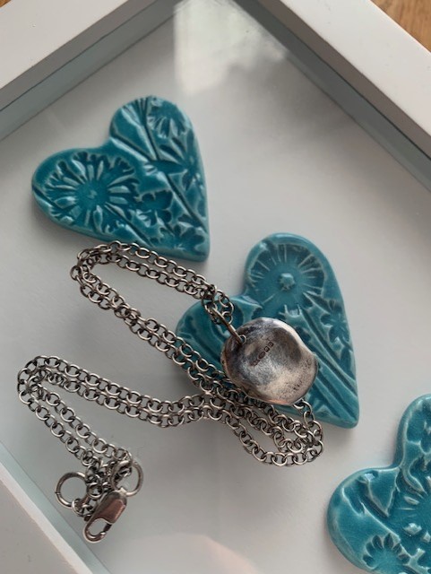 Chain lenght 18inch , sterling silver with a lobster clasp the chain is oxidosed so will be blackened to be in keeping with the pendant, chain may differ slightly from picture,