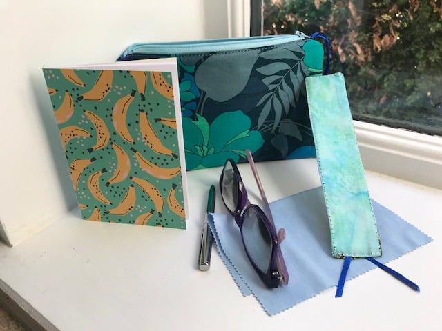 It's good to be able to keep everything you need for reading together in one place; a pen and notebook if you want to take notes for your bookclub; a cloth to clean your specs; bookmark. I made one for myself years ago and have only just got around to making more for gifts and to sell.