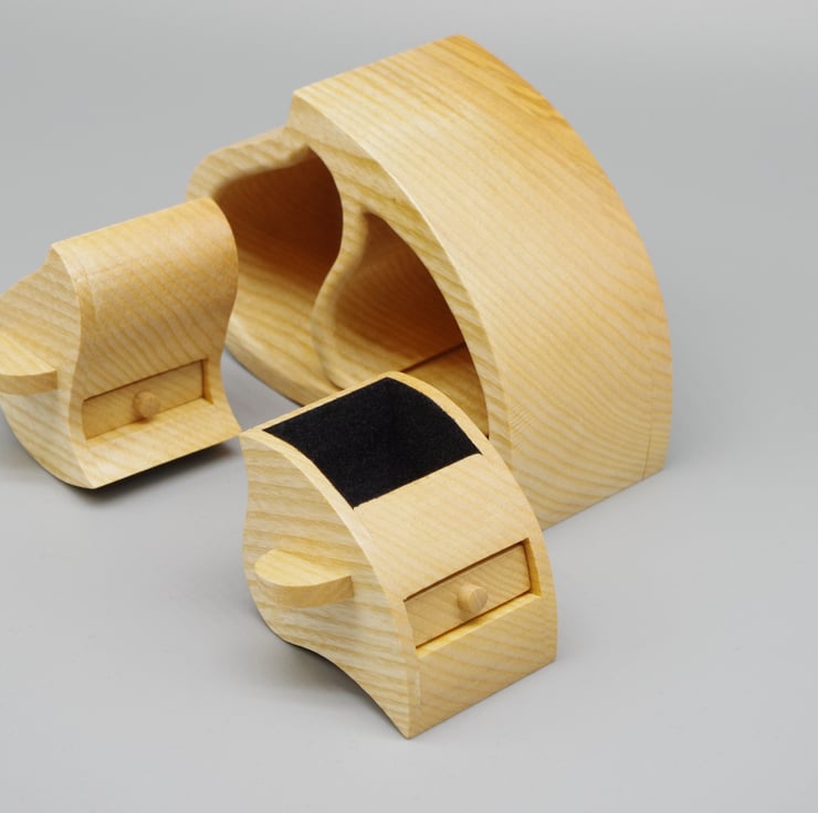An impressive two drawer wooden trinket, jewel box, with two secret drawers.