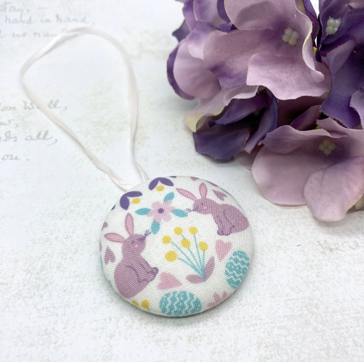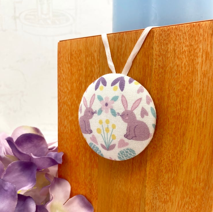 Here’s a special gift to brighten up your home this Spring - a beautiful Spring bunny fabric button ornament.