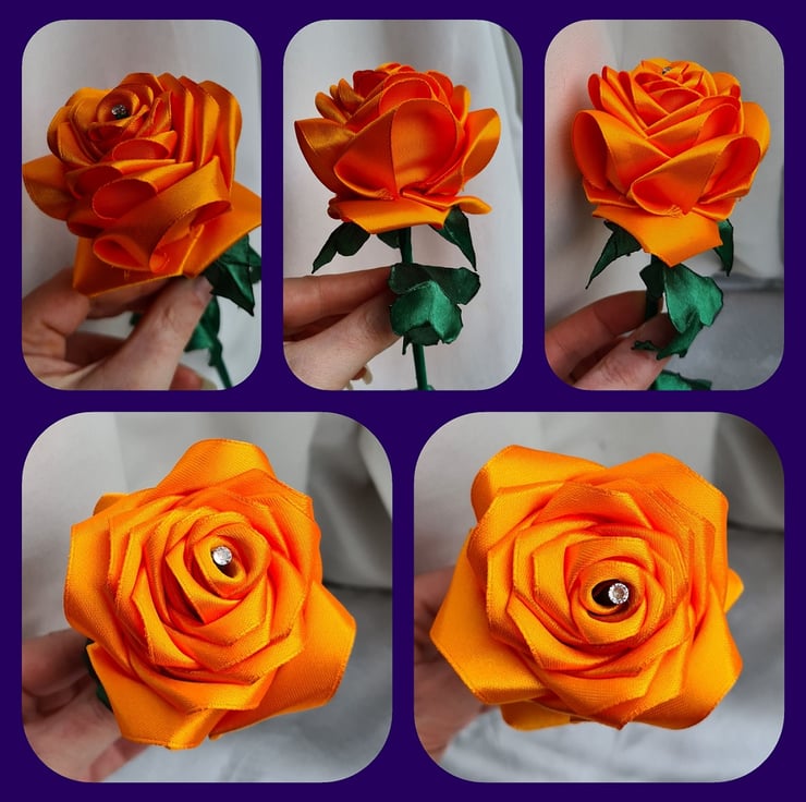 Orange roses are so beautiful and fiery, bright and exuberant. I couldn't resist making this gorgeous Orange Ribbon Rose.