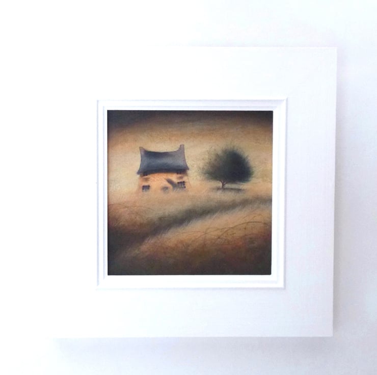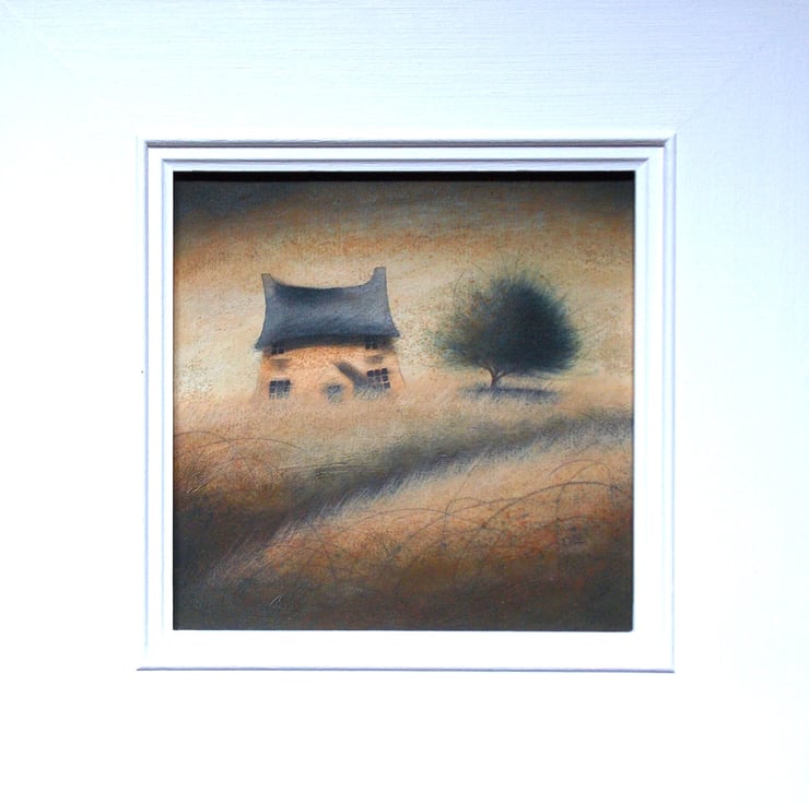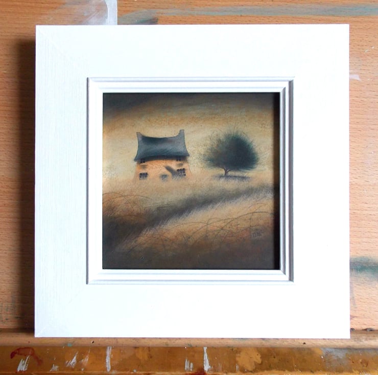 Evening Storm - Original acrylic painting on board. In a white, hand painted wooden frame, ready for hanging. The frame has no glass.