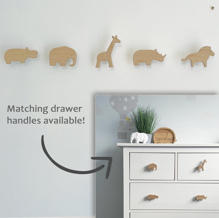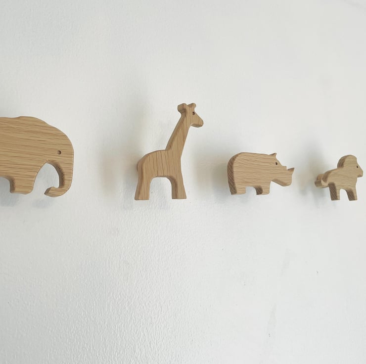 If you are creating a safari themed nursery or children’s room, these safari animal wall hooks will make the perfect addition to your wild animal décor. They are both stylish and practical, and are made from solid oak!