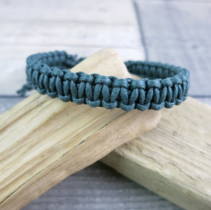 Great for guys, this larger size cotton macrame bracelet in Sea Green is adjustable in size with a sliding knot.