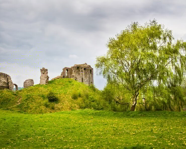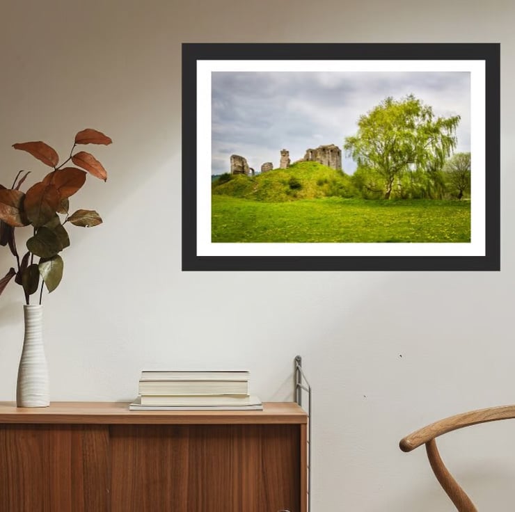 A limited edition photo print of an image taken at the beginning of Spring during a walk around the village of Clun near the Welsh border with Shropshire. The vivid greens of the new leaves on the Silver Birch tree and the carpet of grass and dandelions work well with the colour of the old Castle walls and impart a feeling of calm. Old Castles are fascinating places and Clun Castle is no exception. You really do feel the age of the of the place and the Silver Birch tree growing next to it makes (I think) a lovely image.