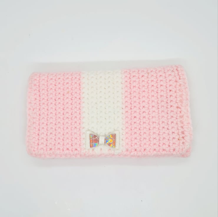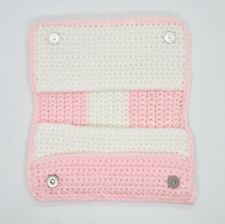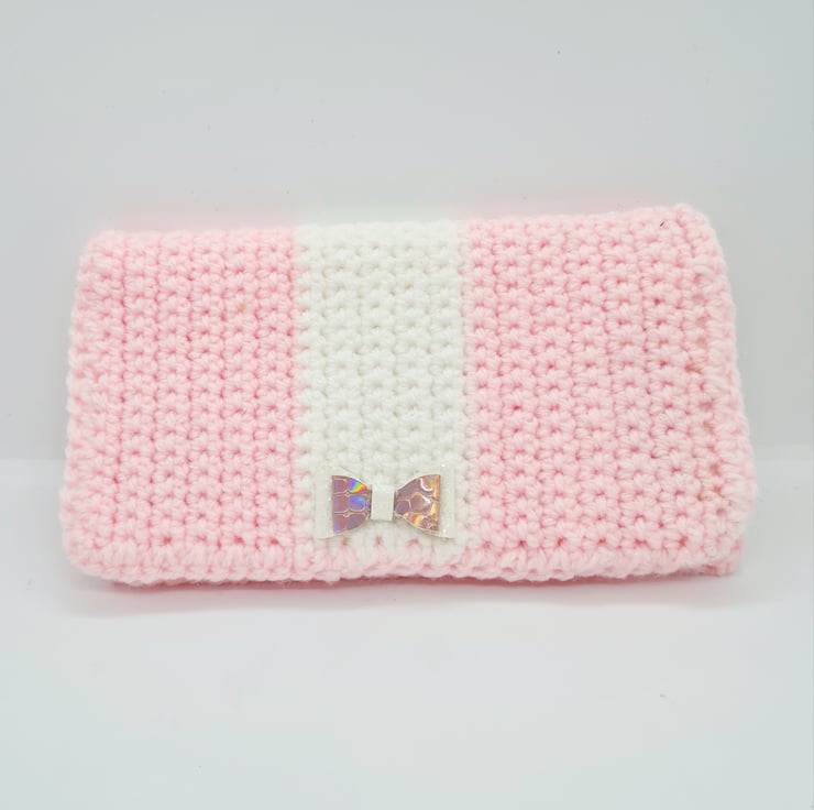 Handmade crocheted Pink and White purse card wallet