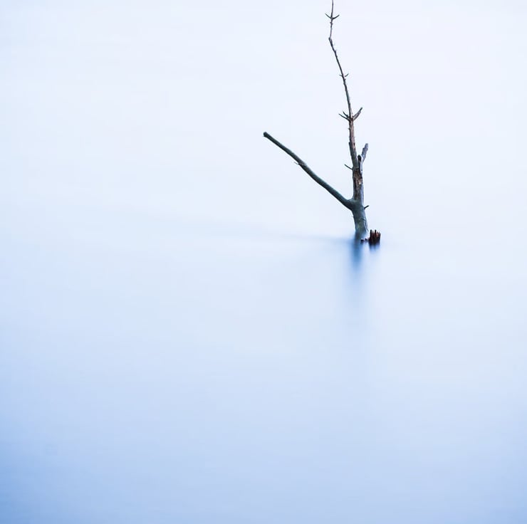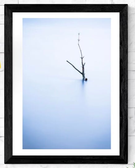 This wall art photography print is for all the minimalists out there. It was taken at a reservoir when the water levels were very high and this little tree had been almost completely submerged. A long shutter speed has smoothed out the ripples on the water and gives the impression of ice. Adding a cool blue tone gives a calm feeling to the shot. This minimalist type of image is a favourite of mine and I took several similar photos on this particular day as the conditions were just right.