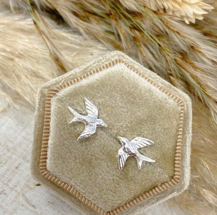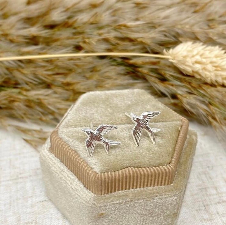 Beautiful swallow stud earrings set in Sterling Silver