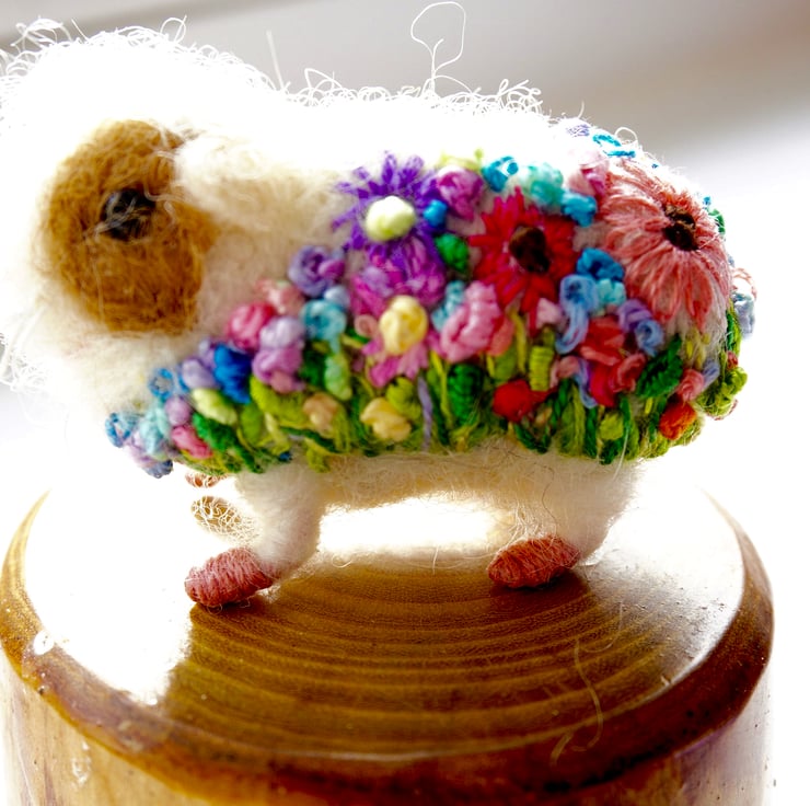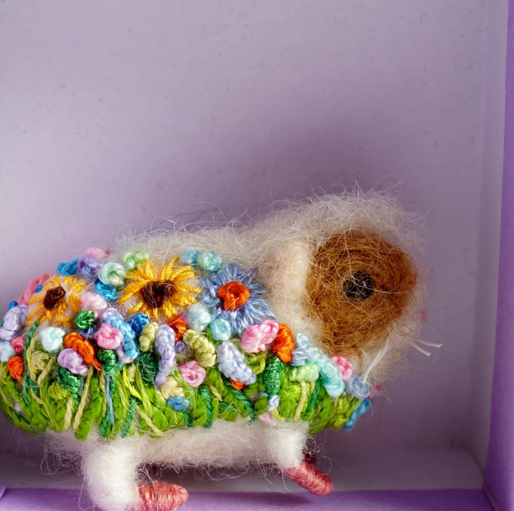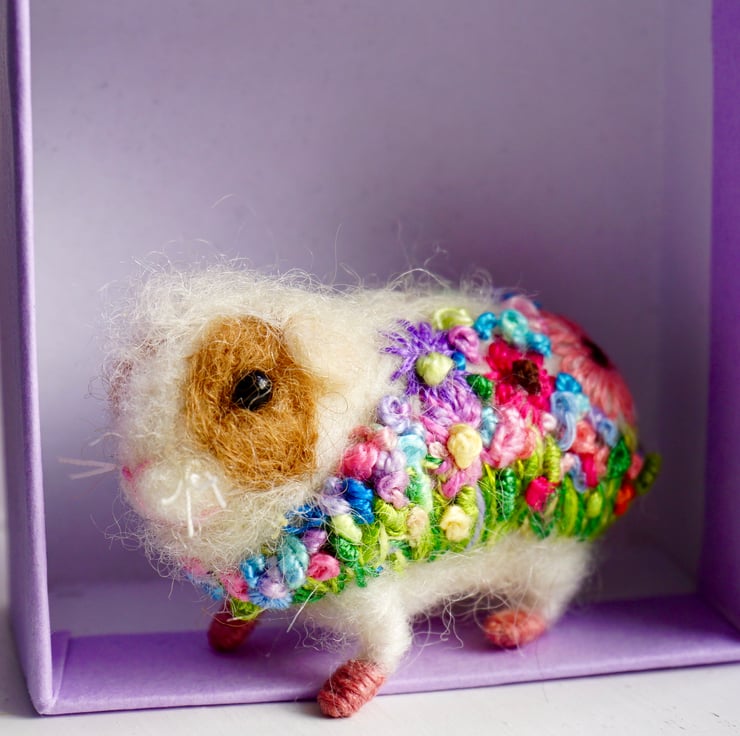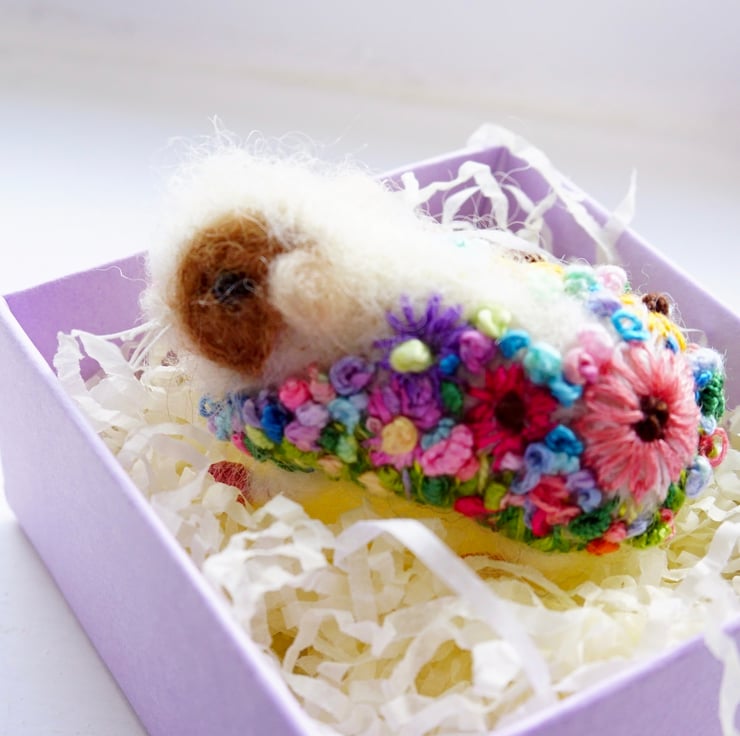 Needle Felted Floral Guinea Pig
