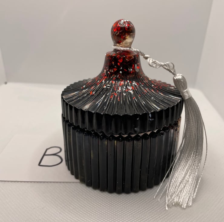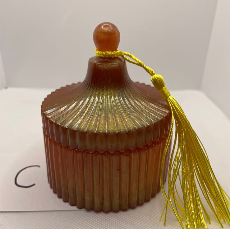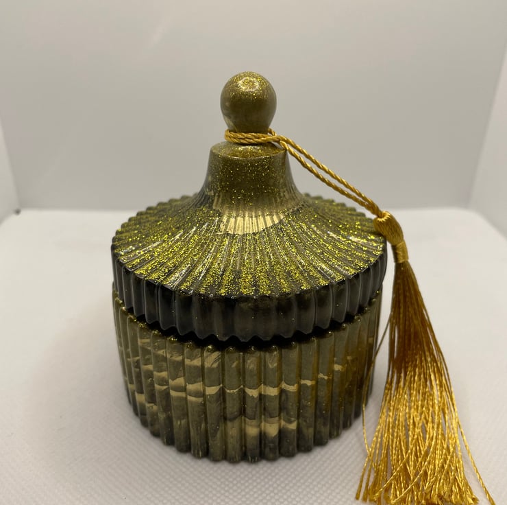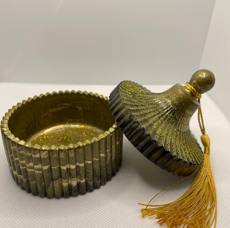 These beautiful, elegant, vintage style, jewellery or trinket boxes would enhance any dressing table or workspace. They're made with epoxy resin, coloured with creamy mica powder and topped with a complementary silky tassel.