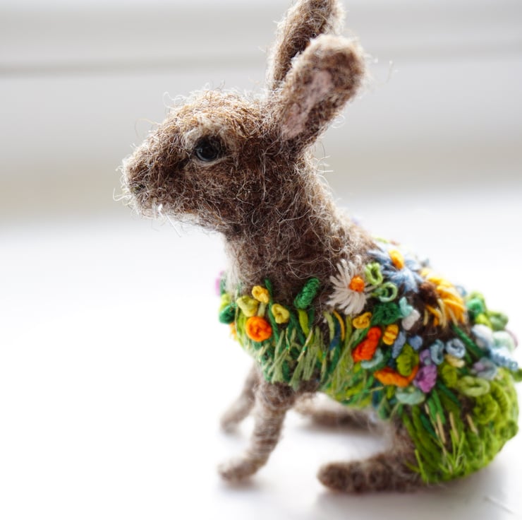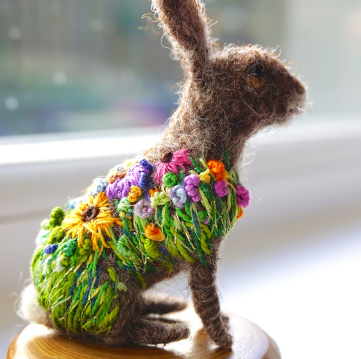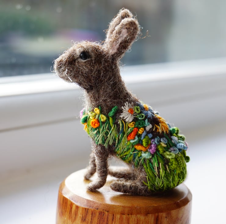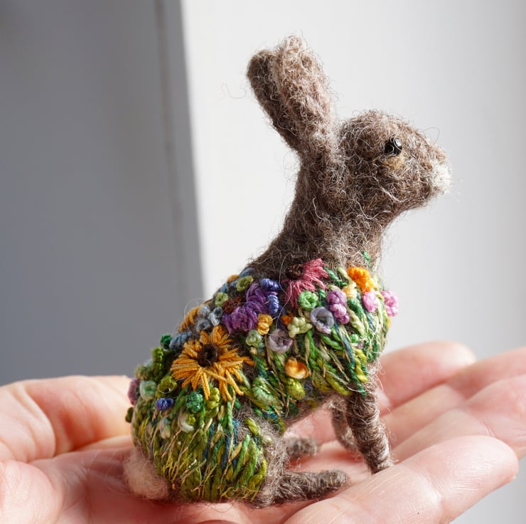 Needle felted and embroidered with beautiful threads ,this little rabbit measures approx 8cm tall(3inches) and 4cm long.Comes with gift box