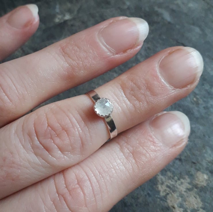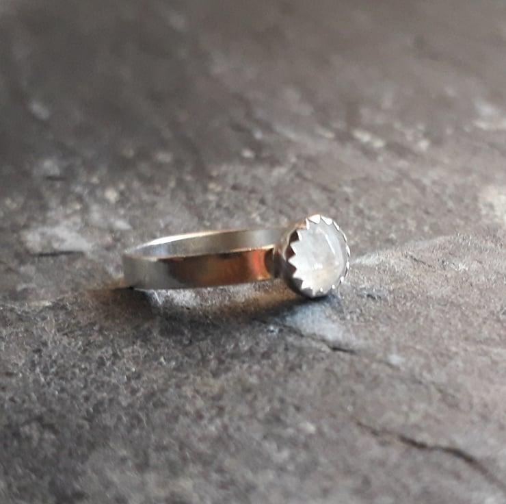 Sometimes simple is the most beautiful. This moonstone ring is so minimalistic that toy ca wear it to every occasion and combine and layer it with other rings and hand adornments. It's great for petite hands or wear it on your pinky or as finger tip ring.