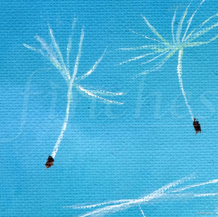 When you are a child, the world around you is so enchanting and full of wonder. I recall picking dandelion clocks and blowing the seeds into the air and my grandparents sharing with me that fairies tell the time by how many blows it takes to remove all the seeds. Therefore, the second Spring fairy painting of the series is called 'Spring Timekeeper Fairy'.