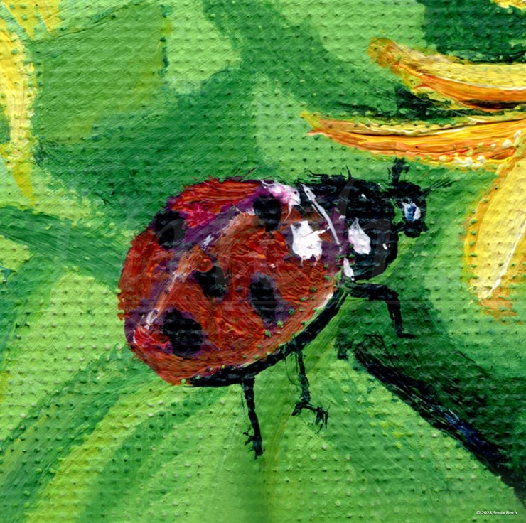 The ladybirds going about their work represent protection, healing, good fortune, and grace in Native American spirituality as it is a very spiritual animal that often protects plants and flowers from pests and other bugs to help them thrive.