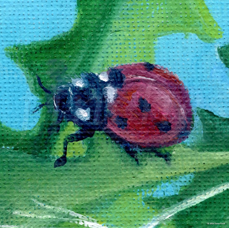 The ladybirds going about their work represent protection, healing, good fortune, and grace in Native American spirituality as it is a very spiritual animal that often protects plants and flowers from pests and other bugs to help them thrive.
