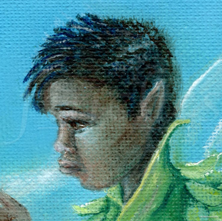 When you are a child, the world around you is so enchanting and full of wonder. I recall picking dandelion clocks and blowing the seeds into the air and my grandparents sharing with me that fairies tell the time by how many blows it takes to remove all the seeds. Therefore, the second Spring fairy painting of the series is called 'Spring Timekeeper Fairy'.