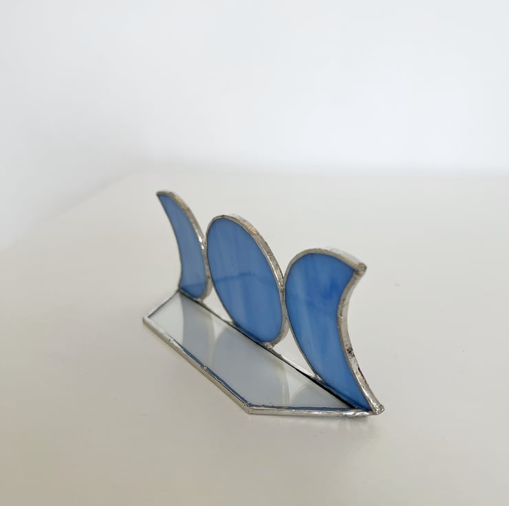 This piece is made using the traditional copper foil technique (Tiffany) and due to the nature of glass each piece has its own characteristics so they are all unique .