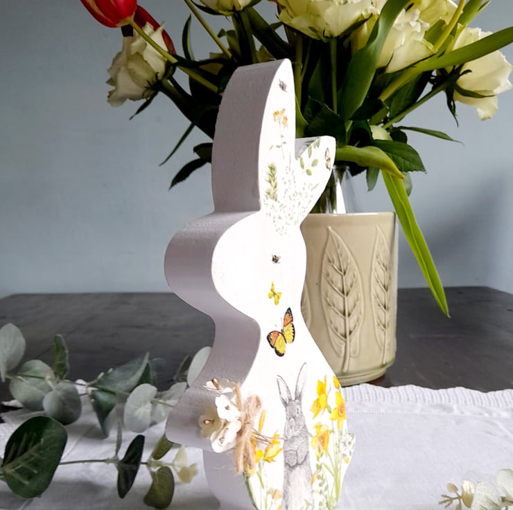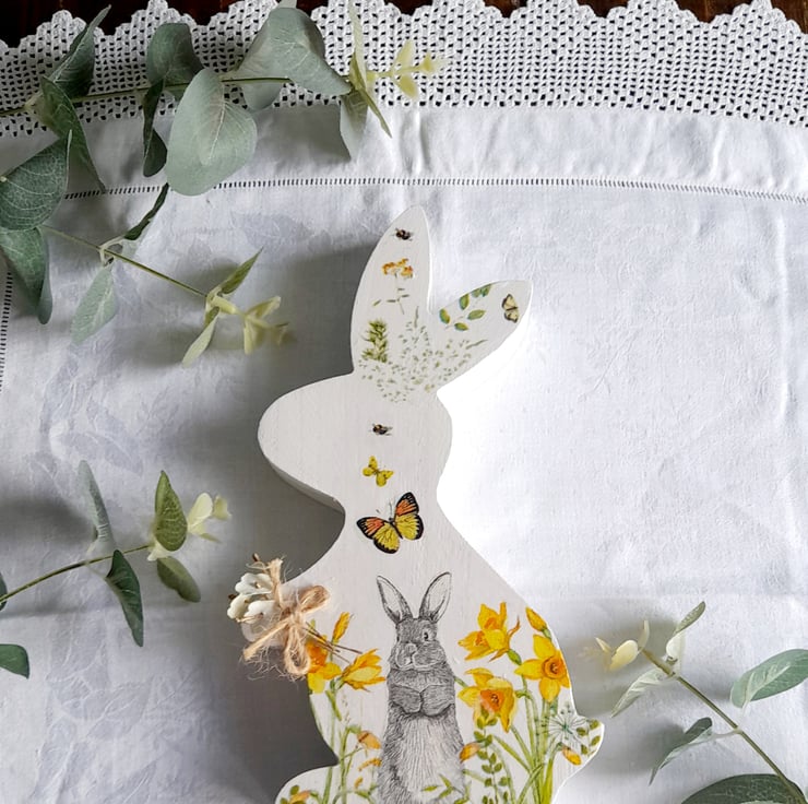 A perfect Easter addition to your home featuring a Spring decoupaged scene of Daffodils, Butterflies & a cute Bunny.