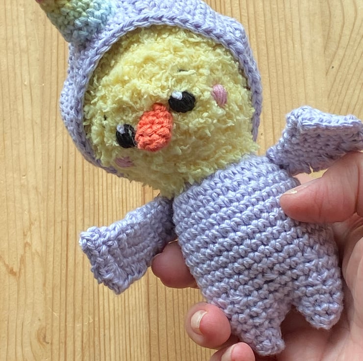 This cute chick is dreaming of being a unicorn, so he’s popped on a unicorn onesie !