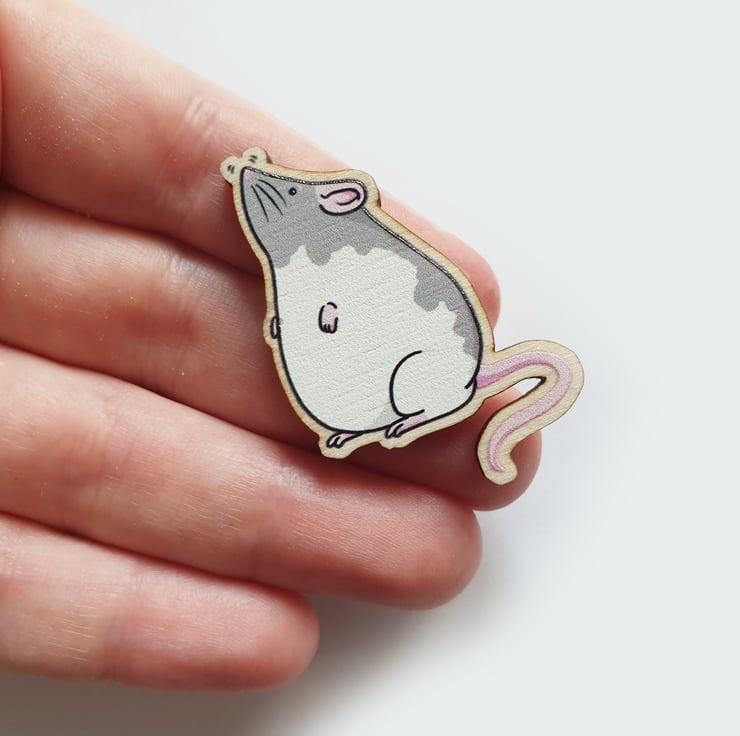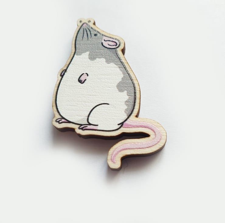 A sweet little rat pin brooch made from my original artwork. This eco friendly badge is made from wood and comes on a backing card, ready for gift giving (or keep it for yourself, I wont tell anyone!) Perfect for pinning to your hat, coat, bag or jacket - or just pin him on a board with your pin collection